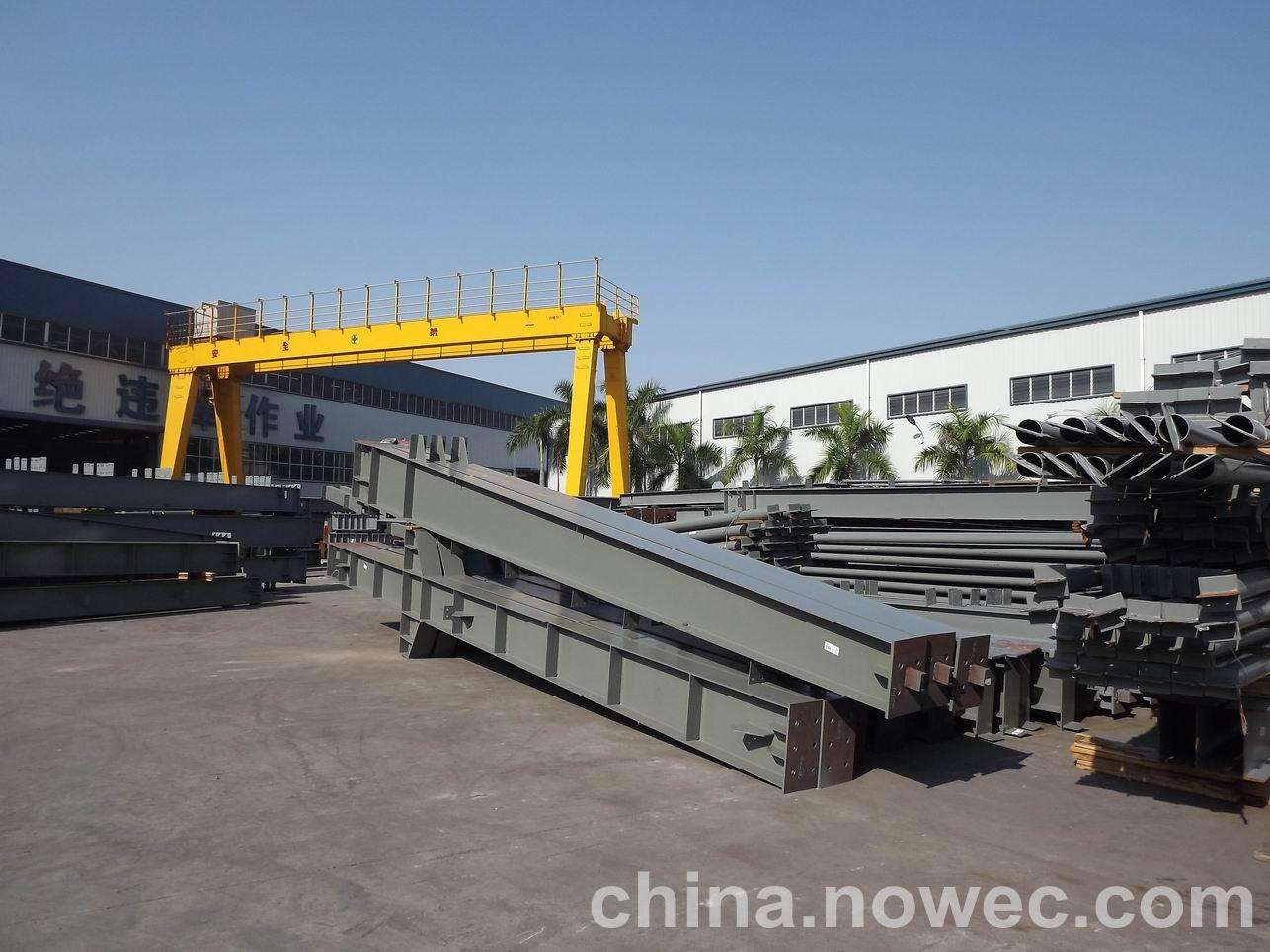 条状单元一般沿长跨方向分割,其宽度约为1~3个网格,其长度为l2或l2/2(l2为短跨跨距)。块状单元一般沿沛县网架平面纵横向分割成矩形或正方形单元。每个单元的重量以现有起重机能胜任为准。条(块)与条(块)之间可以直接拼装,也可空一网格在高空拼装。由于条(块)状单元是在地面拼装,因而高空作业量较高空散装法大为减少,拼装支架也减少很多,又能充分利用现有起重设备,故较经济。这种安装方法适用于分割后网架的钢度和受力状况改变较小的各类中小型网架,如两向正交正放四角锥、正放抽空四角锥等网架。